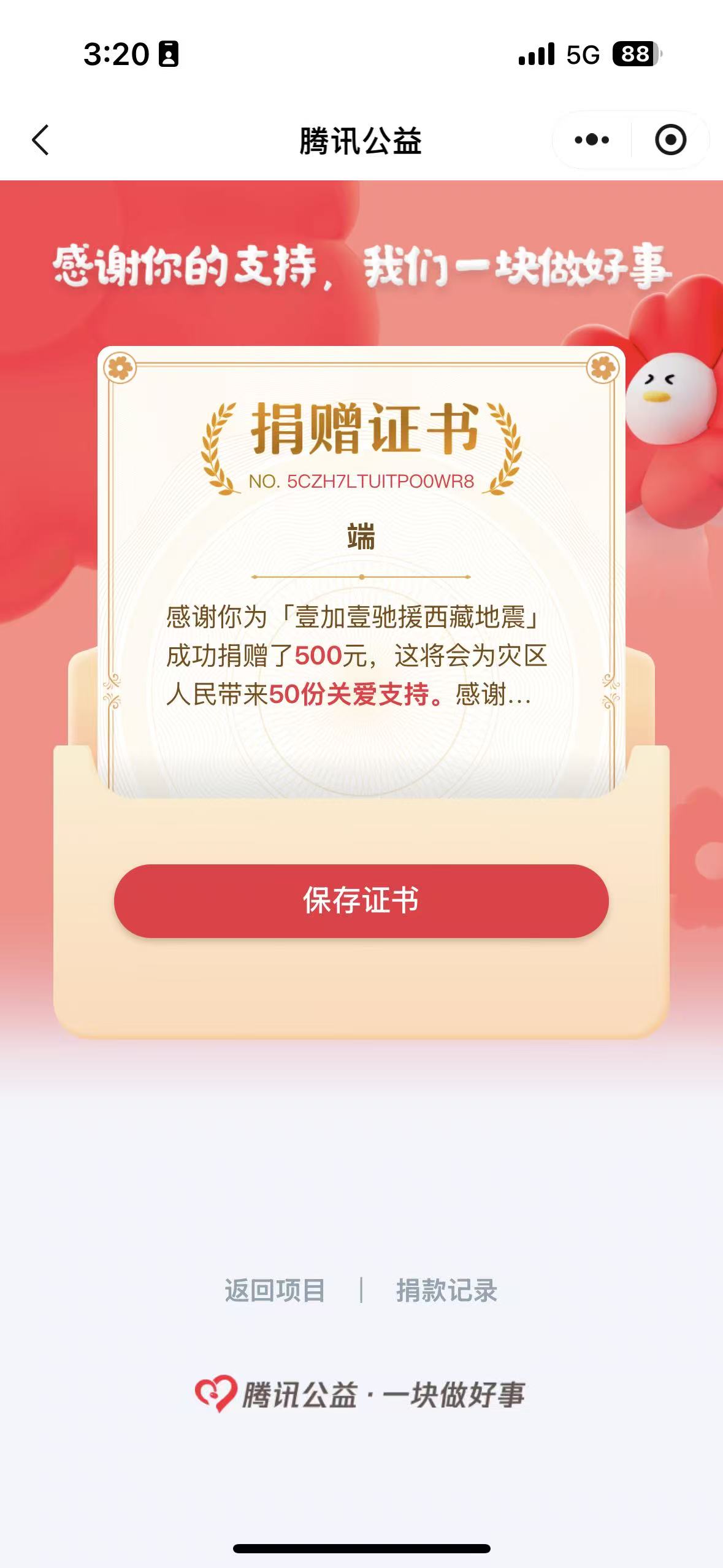 腾讯月捐: 100 每月固定扣除