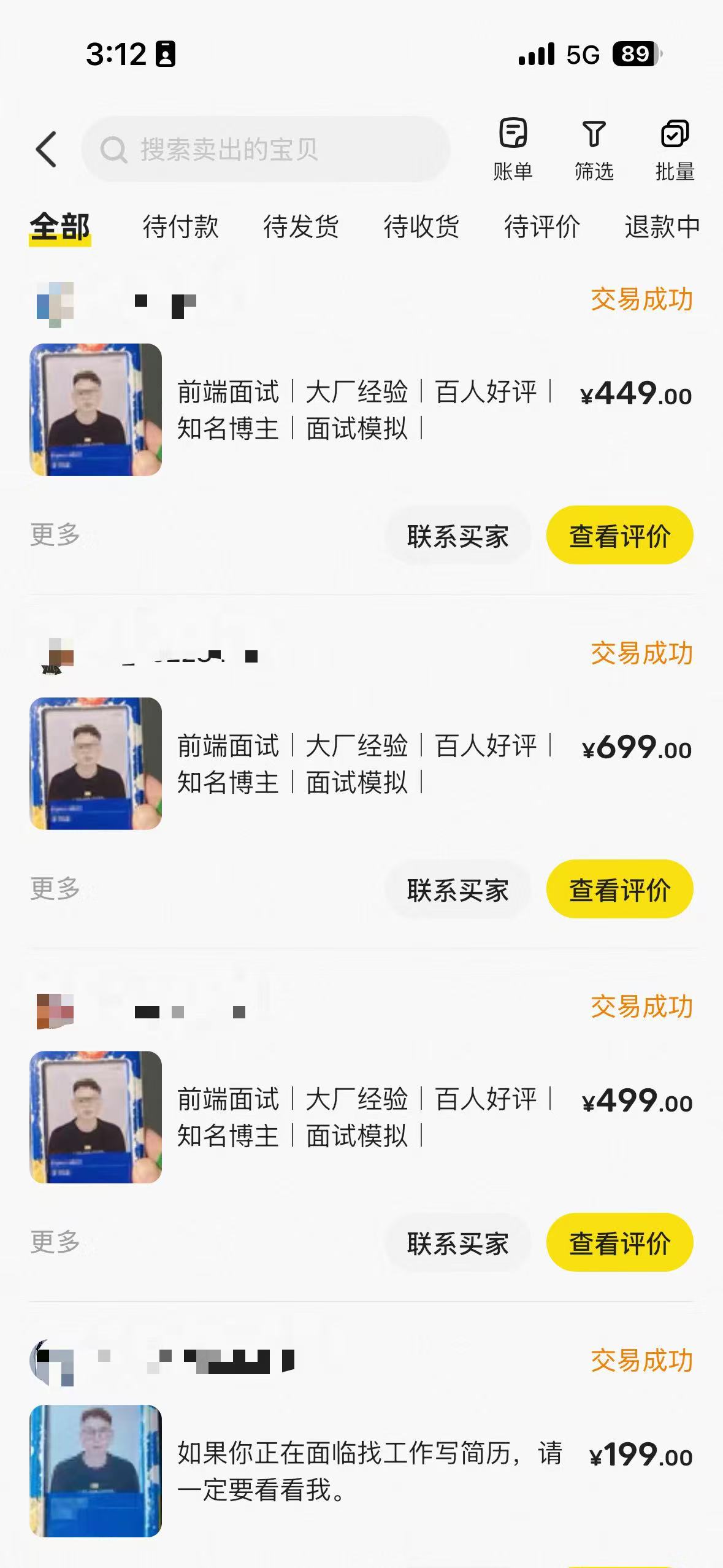 前端大环境越来越差,很多人都失业了,有的是能力问题,有的是机遇问题,最开始是有人找我付费帮忙做各种ppt,做技术分享,后来我觉得可以利用自己的专业去辅导一些人找到满意的工作,无非是要耗费一些自己的精力,我就把自己的专业能力发布到闲鱼,然后开始接单。