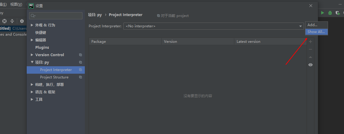 - IDE安装好后还需要进行解释器的配置连接,不然无法工作。