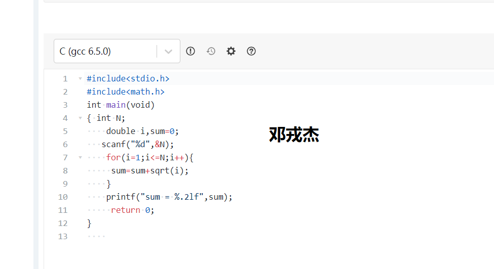 +⋯的前N项之和。可包含头文件math.h,并调用sqrt函数求平方根。