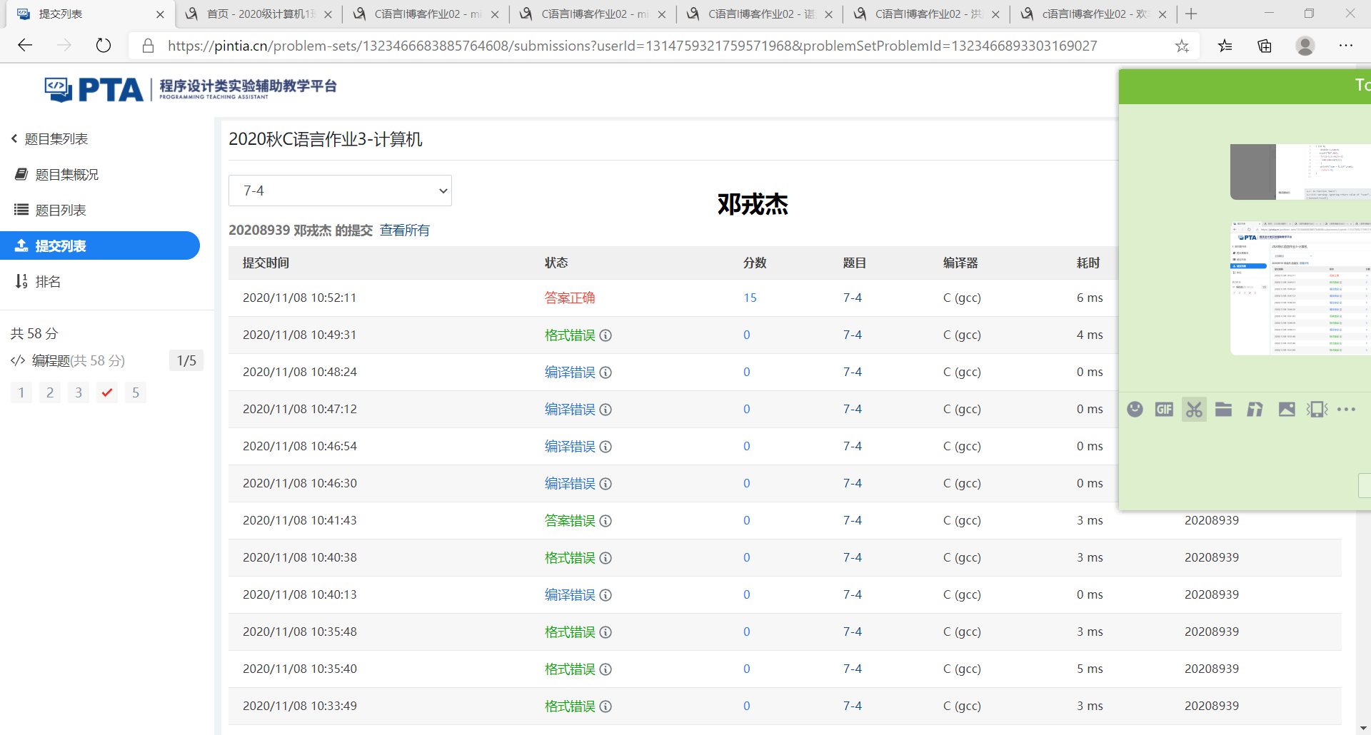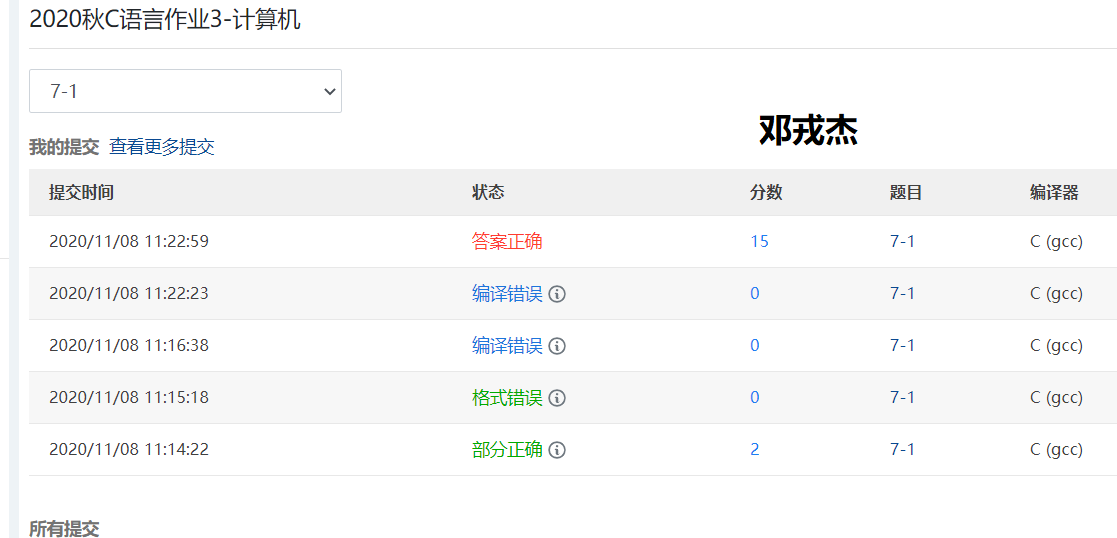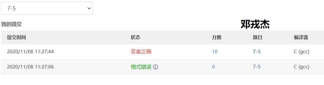 Q1:打完发现忘记打 scanf了..有点小粗心,后来=前后又忘记空格了.