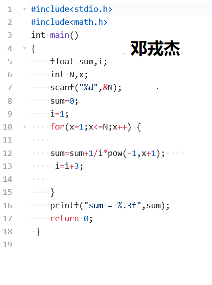 本题要求编写程序,计算序列 1 - 1/4 + 1/7 - 1/10 + ... 的前N项之和。