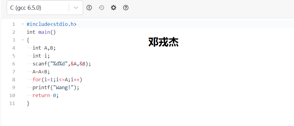 本题要求你为电子宠物汪做一个模拟程序,根据电子眼识别出的两堆小球的个数,计算出和,并且用汪星人的叫声给出答案。