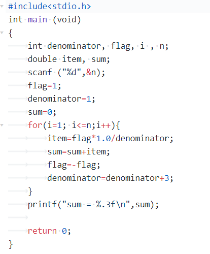 1.数据表达:i,n,sum为整形变量,result浮点型变量。