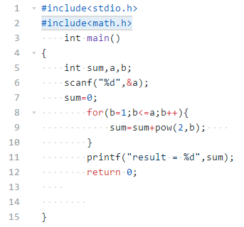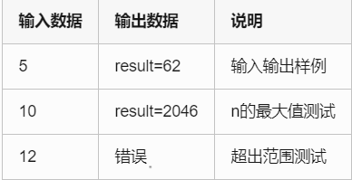 本题要求编写程序,计算sum=21+22+23+⋯+2n。可以调用pow函数求幂
