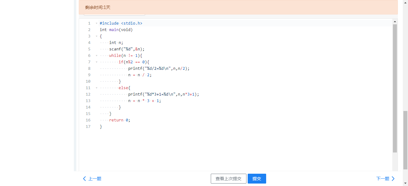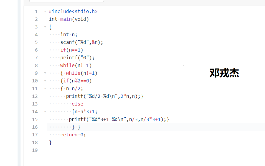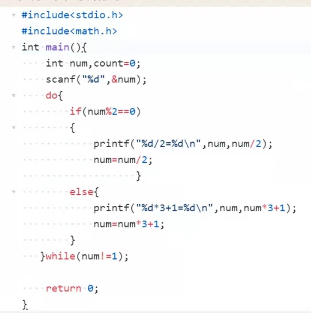 数据处理:使用了while循环,表达式:n=n*3+1和n=n/2