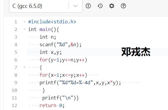 本题要求对任意给定的一位正整数N,输出从11到N*N的部分口诀表。