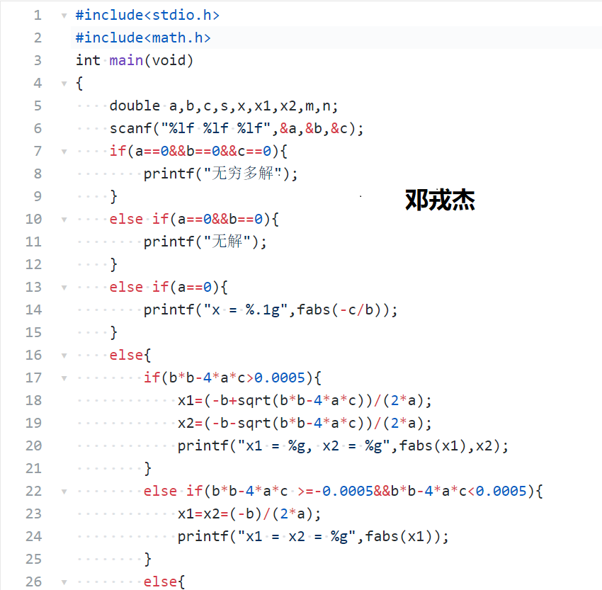 ①数据表达:定义了浮点形变量a,b,c,s,x,x1,x2,m,n。