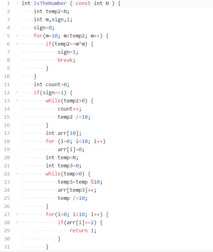 定义一个整形变量储存N的平方根,因为要求是完全平方数所以定义整形来判断。