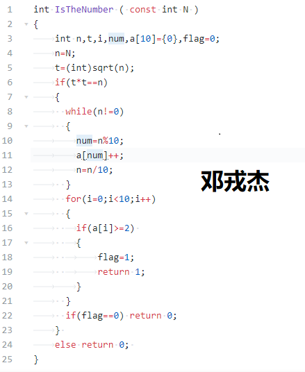 本题要求实现一个函数,判断任一给定整数N是否满足条件:它是完全平方数,又至少有两位数字相同,如144、676等。