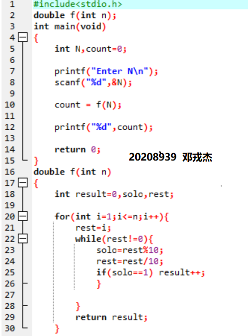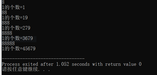 1.1写出一个函数f(N),返回1到N之间出现的”1“的个数,比如f(12)=5;