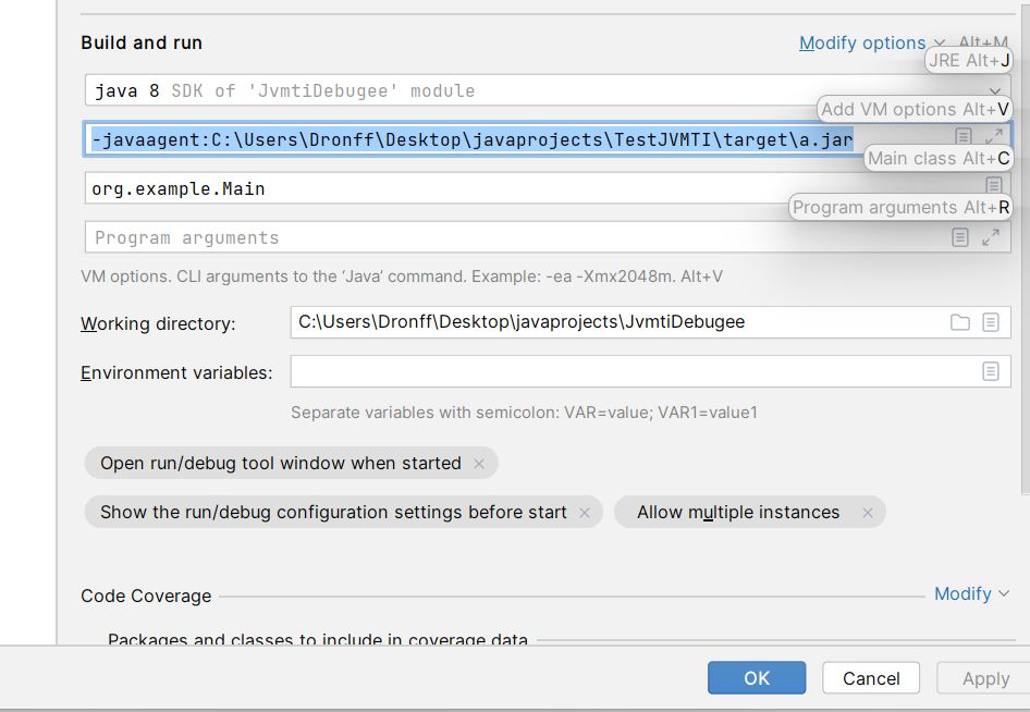 2:编写cpp代码生成dll/so,这种方式还没试过,大致是要将java目录下的include目录中的jvmti头文件include进去然后进行操作,最后通过-agentpath指定