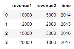 for x, y in zip(time_series['Year'], time_series['Revenue']):