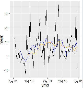 geom_line(aes(x=ymd, y=mav14), color="orange")