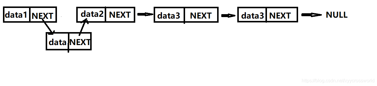 其中DATA数据元素(数据域),可以是int类型或char类型,甚至可以是结构体。NEXT为一个指针通常是用来指向下一个结点,链表的尾部NEXT指向NULL,因为它没有可以指向的空间了。