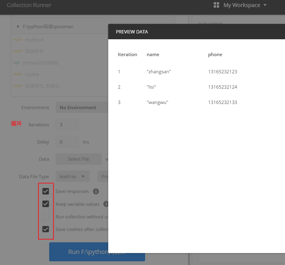 2、点击runner运行并添加参数文件
