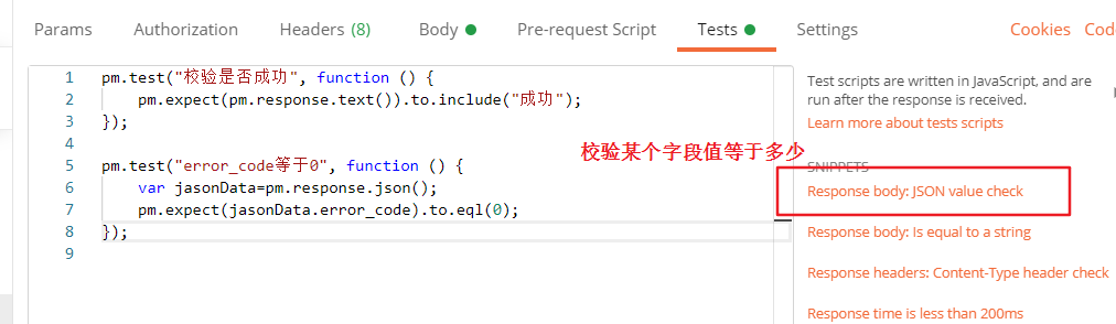 pm.test("校验check", function () {