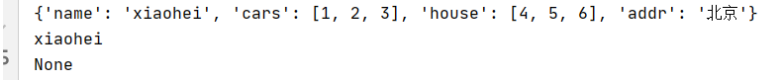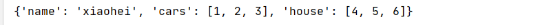 d={'name':'xiaohei','cars':[1,2,3],'house':(4,5,6),'addr':'北京'}
