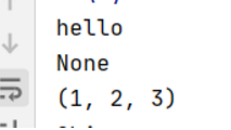 def test(): print('hello') def test2(): return 1,2,3 print(test()) print(test2()) a,b,c=test2() #拆包形式