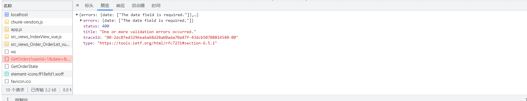 解决方案:打开效果网页,鼠标右击---检查代码(或者F12)--- 点击网络就会出现一行明显红色的代码(如果没有在点击自己的提交事件按钮)