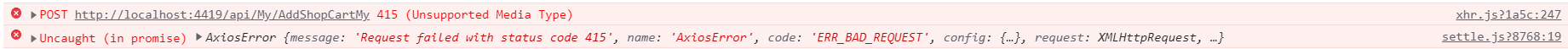 415错误一般为请求方式为[HTTPPOST]和[HTTPPUT]下的错误,造成该问题的原因是客户端未给特性为[HTTPPOST]/[HTTPPUT]的方法传输消息体(也就是忘记传参数了),如下: