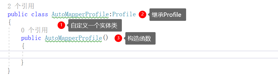 然后在WebAPI下创建一个实体类继承自Profile,接着写一个构造函数(这个构造函数中主要写的就是一些转换,下面会有详细的使用方法)