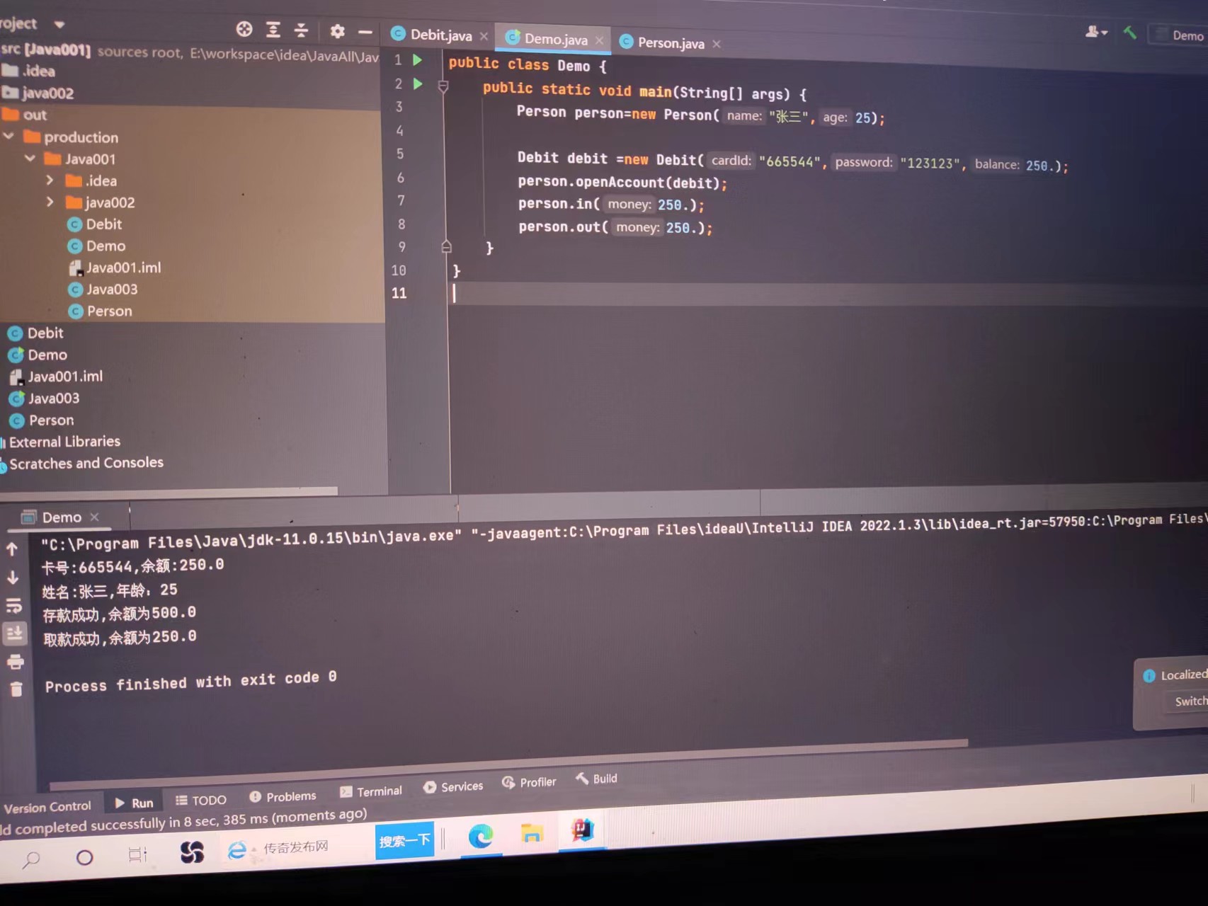 今天复习了下昨天的练习题,在同桌帮助下写完了银行开户和存取款的代码,之后又删掉自己重新写出来了,确实理解不一样,感觉有信心学会java