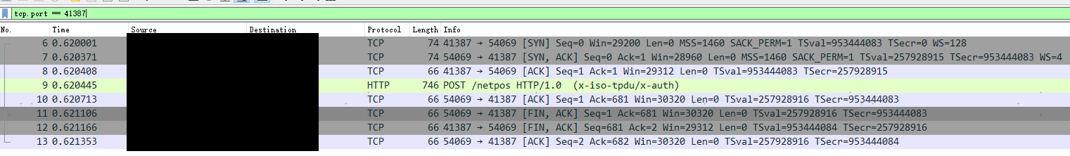 #然后根据代理端口(代理的端口可用来区别连接)筛选某个tcp连接从建立连接到断开连接的过程