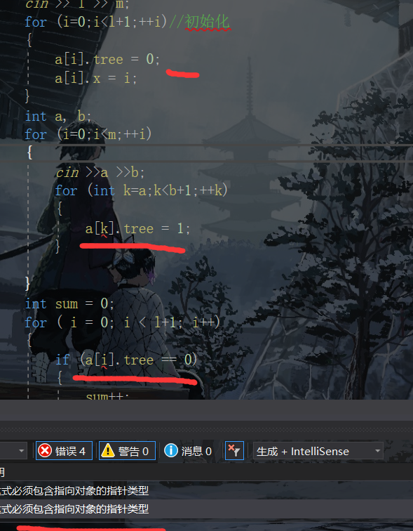 由于马路上有一些区域要用来建地铁。这些区域用它们在数轴上的起始点和终止点表示。已知任一区域的起始点和终止点的坐标都是整数,区域之间可能有重合的部分。现在要把这些区域中的树(包括区域端点处的两棵树)移走。你的任务是计算将这些树都移走后,马路上还有多少棵树。
