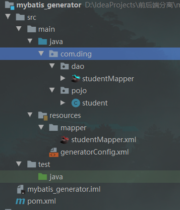 <javaModelGenerator targetPackage="com.ding.pojo"