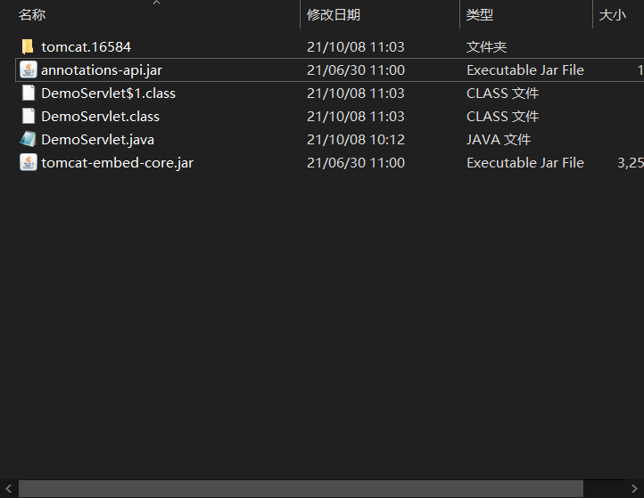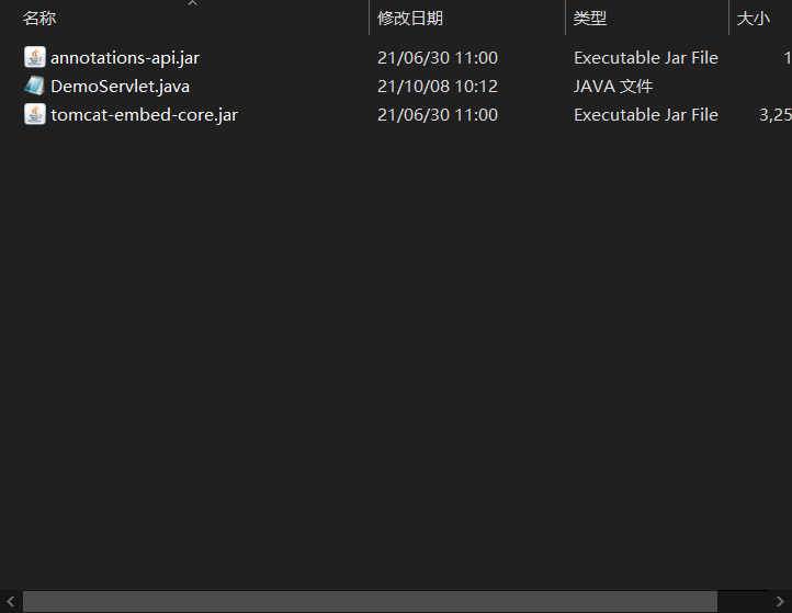 java -cp ".;tomcat-embed-core.jar;annotations-api.jar" DemoServlet