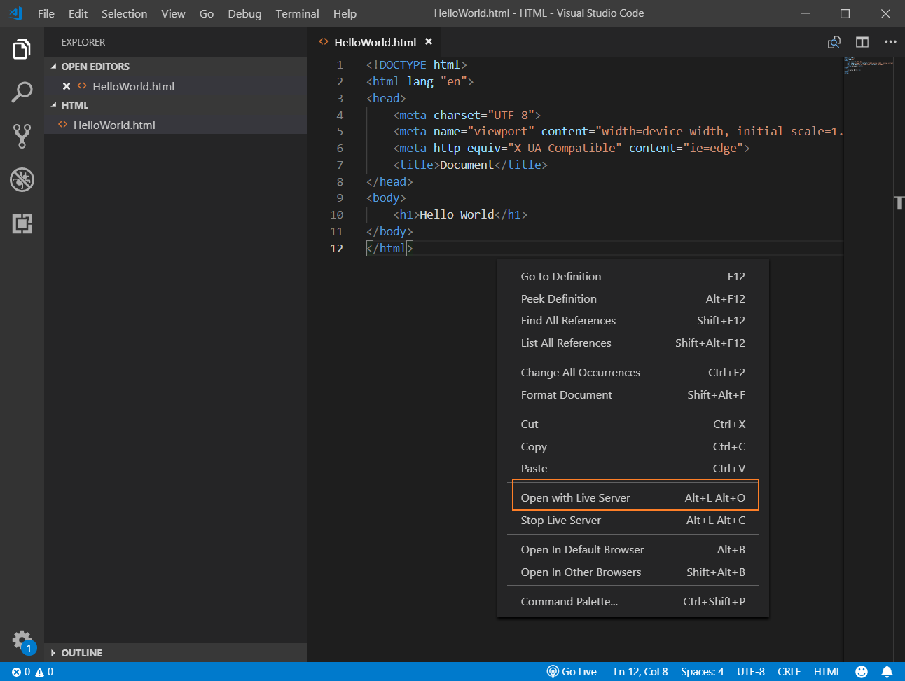 live—server时,点击file—Open Folder选择一个文件夹- 打开需要使用文件——右击选择
