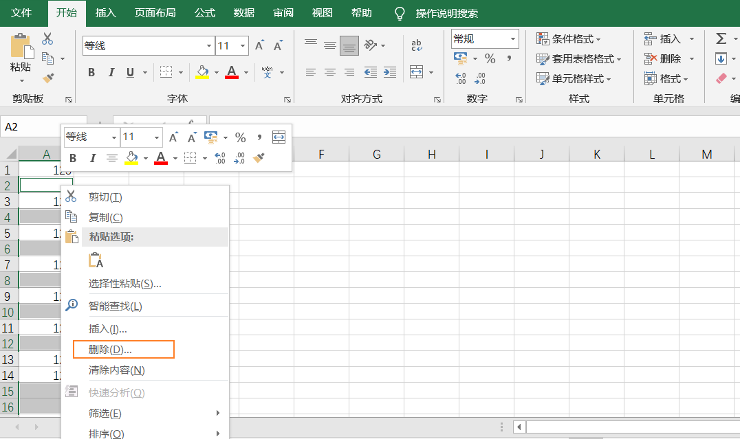 第三步:鼠标移到任意空行上右击,点击删除即可删除空行