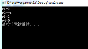 #include<stdio.h> #include<stdlib.h> int main() { int x,y; int r1,r2,r3,r4; x=1; y=2; r1=x+y; r2=x-y; r3=x*y; r4=x/y; printf("r1=%d\n",r1); printf("r2=%d\n",r2); printf("r3=%d\n",r3); printf("r4=%d\n",r4); system("pause"); return 0; }