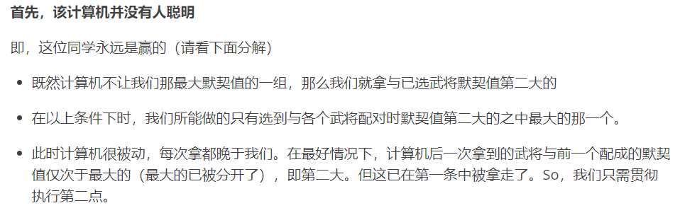 而机器人只会取最大值,这是一个次大值,他不会取,所以我们能保证自己最大。