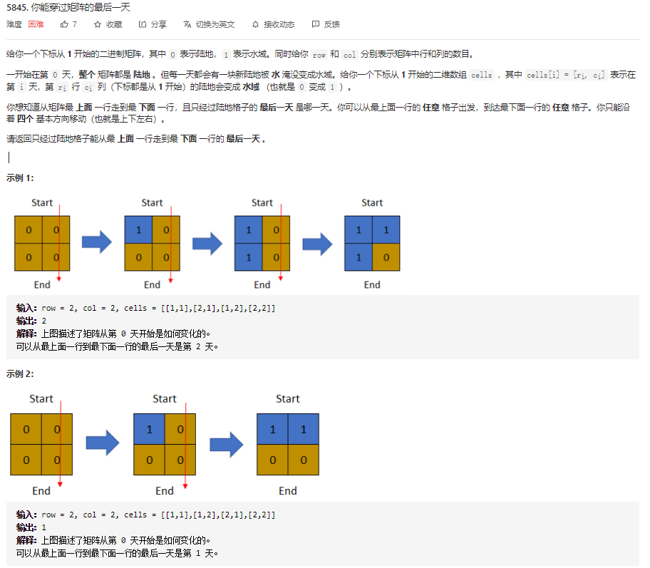 https://leetcode-cn.com/problems/last-day-where-you-can-still-cross/