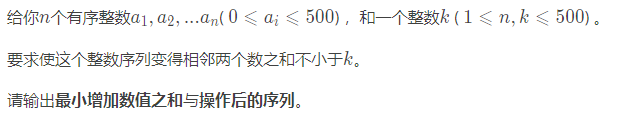 当a[i] + a[i-1] < k 时,加a[i]影响后面