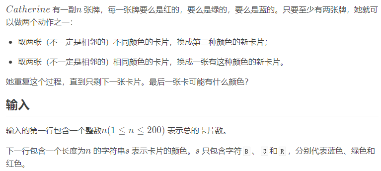 if(!(g&&!b&&(g==1||g==n) || !g&&b&&(b==1||b==n))) cout << "R";