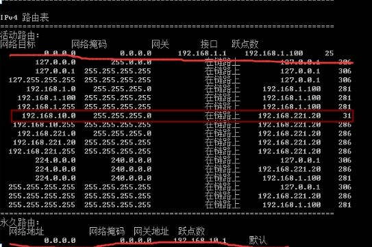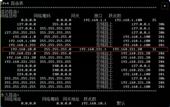 route add 192.168.10.0 mask 255.255.255.0 192.168.221.1