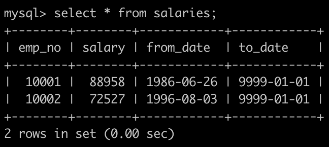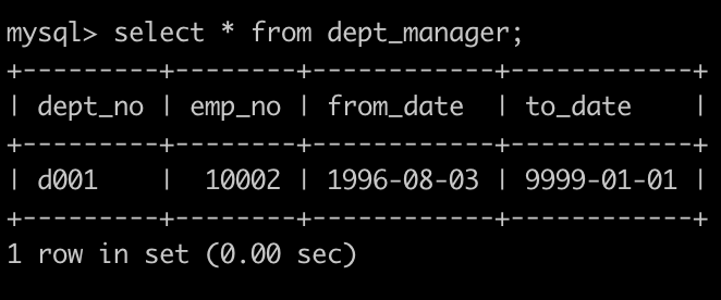 获取所有非manager员工薪水情况,给出dept_no、emp_no以及salary,以上例子输出: