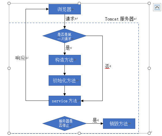在service方法中编写处理请求的业务逻辑代码,浏览器发送请求后由tomcat服务器自动调用执行。