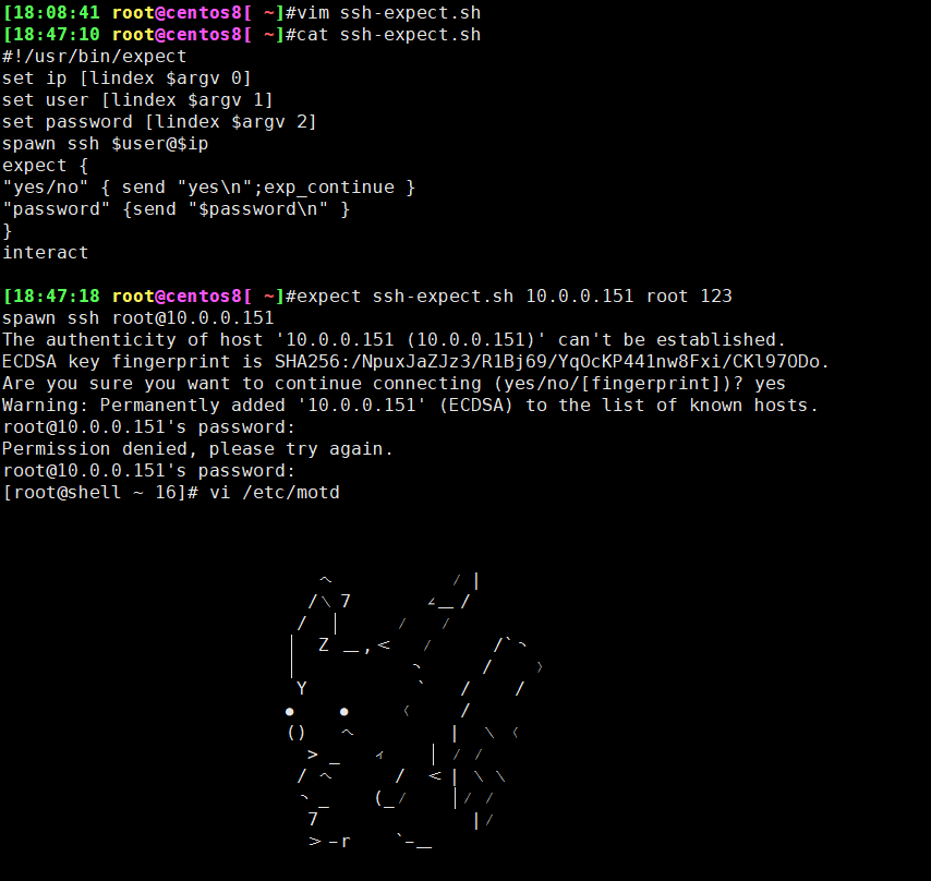 1、编写脚本实现登陆远程主机。(使用expect和shell脚本两种形式)。