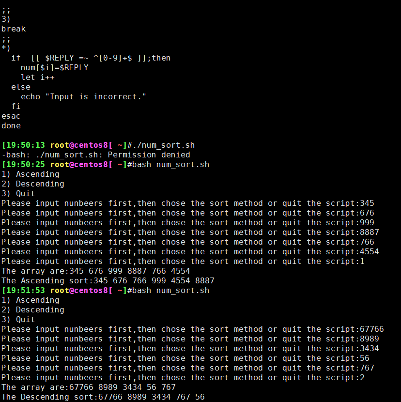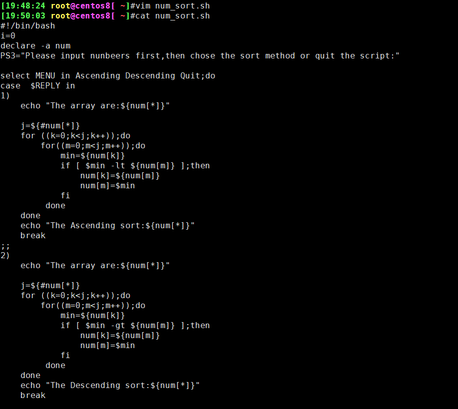 3、输入若干个数值存入数组中,采用冒泡算法进行升序或降序排序