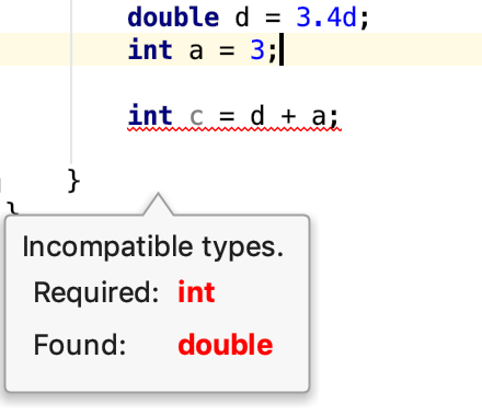 这个例子就违背了第一条原则。一个double类型加上一个整形。在计算的过程中,整形会被转换为double类型在计算。最后的结果将会是double.