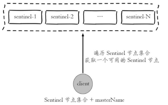 1) 遍历Sentinel节点集合获取一个可用的Sentinel节点,Sentinel节点之间可以共享数据,所以从任意一个Sentinel节点获取主节点信息都是可以的。