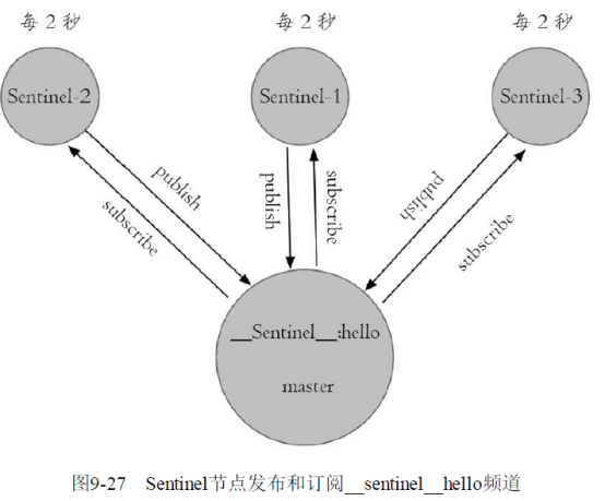 2)每隔2秒,每个Sentinel节点会向Redis数据节点的__sentinel__:hello频道上发送该Sentinel节点对于主节点的判断以及当前Sentinel节点的信息,同时每个Sentinel节点也会订阅该频道,来了解其他Sentinel节点以及它们对主节点的判断,所以这个定时任务可以完成以下两个工作:
