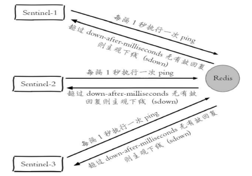每个Sentinel节点会每隔1秒对主节点、从节点、其他Sentinel节点发送ping命令做心跳检测,当这些节点超过down-after-milliseconds没有进行有效回复,Sentinel节点就会对该节点做失败判定,这个行为叫做主观下。从字面意思也可以很容易看出主观下线是当前Sentinel节点的一家之言,存在误判的可能。
