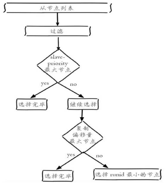 1)在从节点列表中选出一个节点作为新的主节点,选择方法如下: