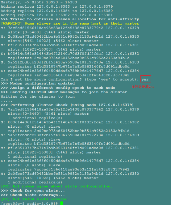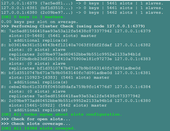 集群完整性指所有的槽都分配到存活的主节点上,只要16384个槽中有一个没有分配给节点则表示集群不完整,check命令只需要给出集群中任意一个节