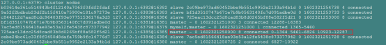 127.0.0.1:6379> cluster info ... cluster_current_epoch:15 // 整个集群最大配置纪元 cluster_my_epoch:13 // 当前主节点配置纪元 |